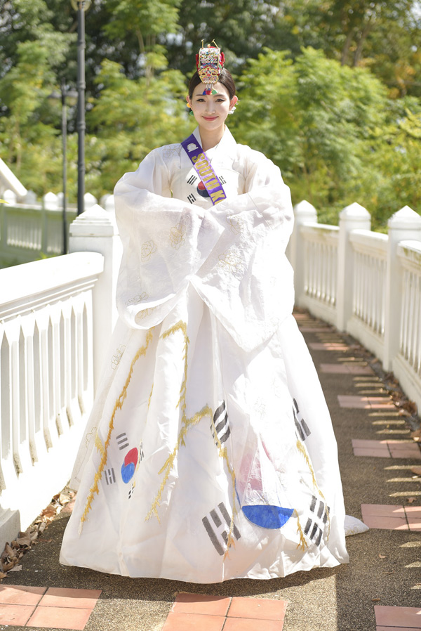 Thí sinh Hàn Quốc xúng xính trong bộ hanbok màu trắng thu hút mọi ánh nhìn.