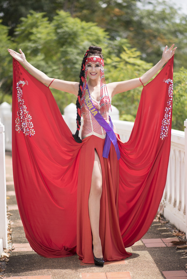 Đại diện đến từ Philippines quảng bá vẻ đẹp văn hóa quốc gia qua quốc phục thêu đính công phu, tỉ mỉ.
