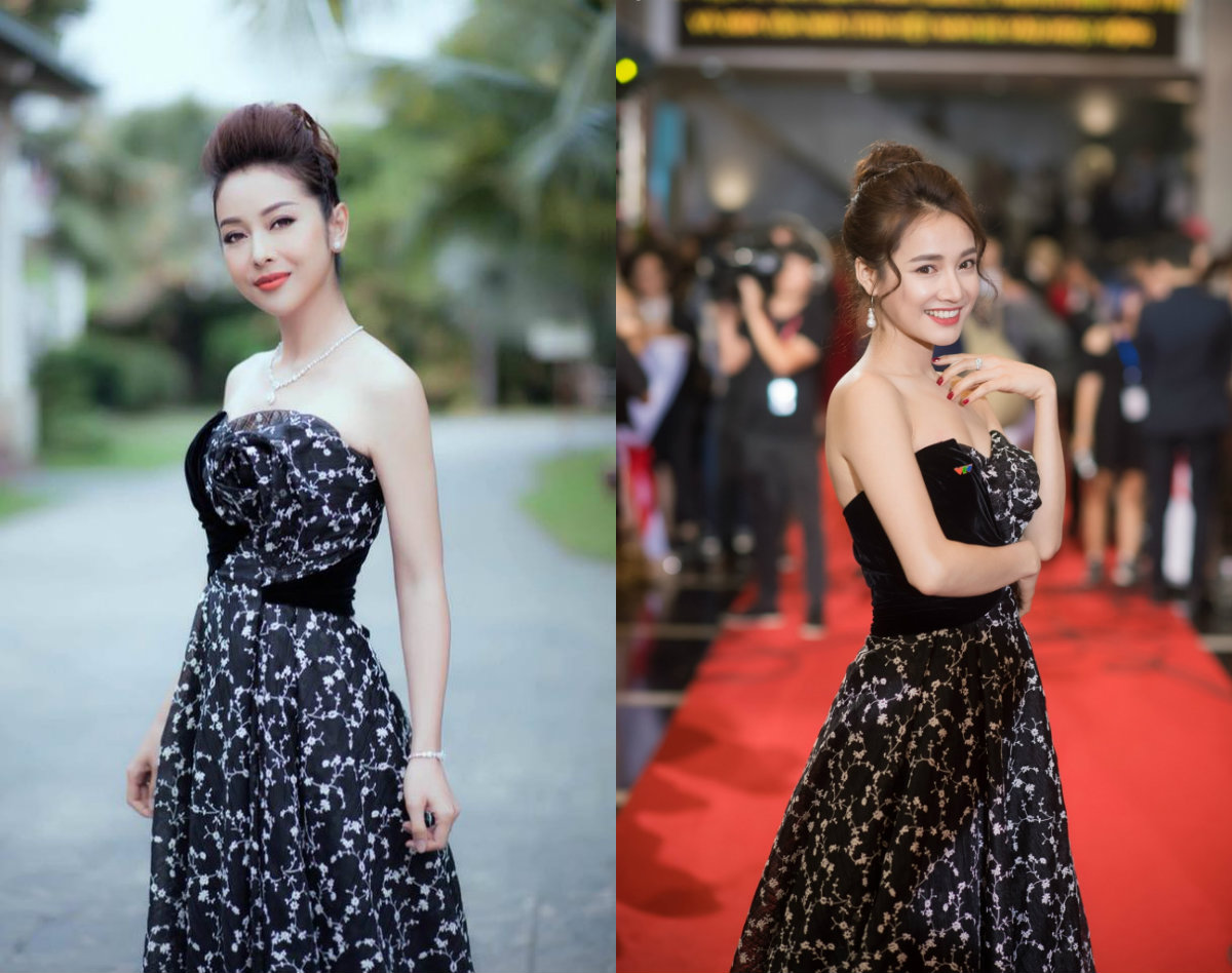 Dù trải qua 3 lần sinh nở, đồng thời hơn bạn gái Trường Giang tận 5 tuổi, thế nên Hoa hậu Jennifer ghi điểm tuyệt đối trong thiết kế này. Và đương nhiên Nhã Phương cũng khiến “Hoa ghen thua thắm, liễu hờn kém xanh”.