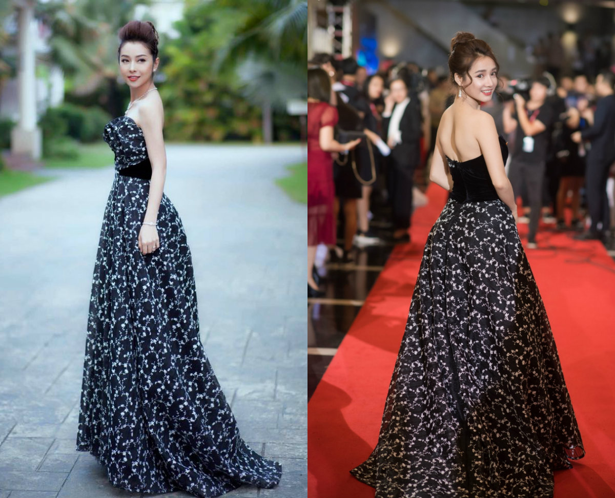 Cả hai người đẹp đều biết cách khai thác tối ưu chi tiết hở lưng trần của chiếc váy.