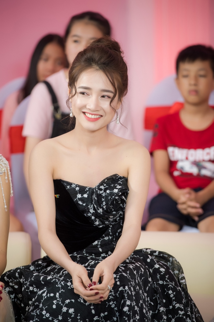 Cô chọn mái tóc búi điệu đà điều đó càng làm tăng vẻ ngọt ngào, mong manh cho bạn gái Trường Giang.