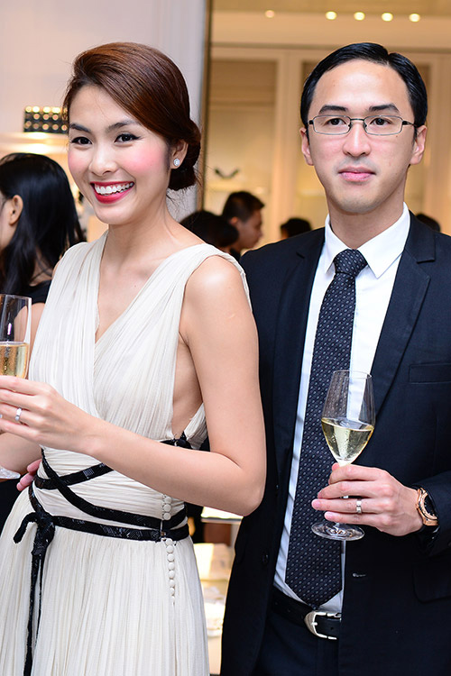 Không chỉ ăn mặc chỉn chu ở văn phòng hay công ty, khi tham dự sự kiện cùng bà xã, người thừa kế tập đoàn Trung Thuỷ vẫn luôn lịch lãm.