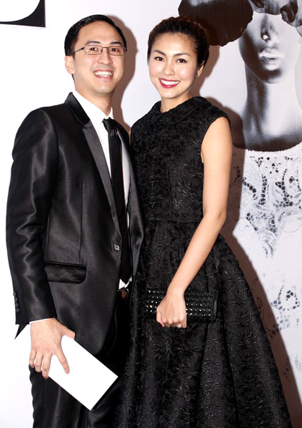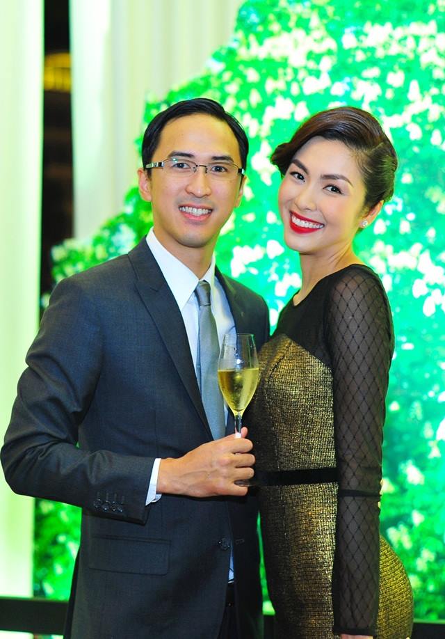 Cặp vợ chồng đình đám chuộng phong cách đơn giản. Giống với bà xã, doanh nhân Louis Nguyễn thường diện sơ-mi trắng khi tham gia các sự kiện của gia đình anh.