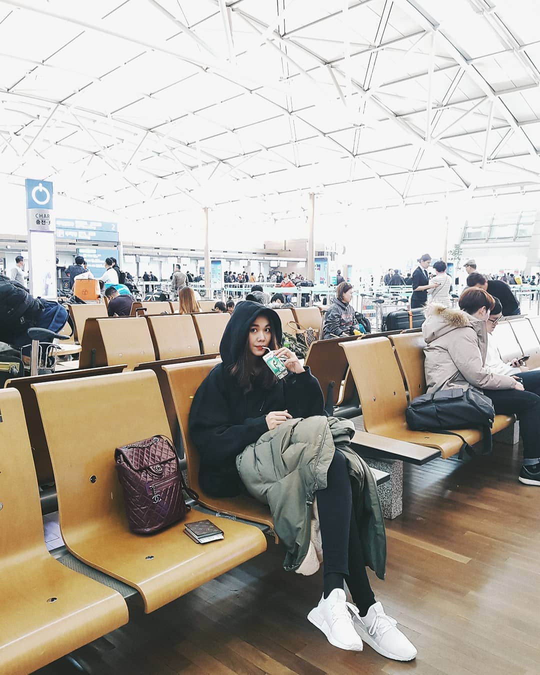 Trong chuyến du lịch mấy ngày đầu năm, Thanh Hằng lựa chọn áo khoác trùm đầu kín mít đi cùng với quần legging ôm tôn lên đôi chân dài 1m12. Bên cạnh đó, các tín đồ thời trang cũng không thể không nhìn vào chiếc ba lô Chanel đắt giá cùng bao da passport Louis Vuitton mà “Mẹ chồng” đang để kế bên.