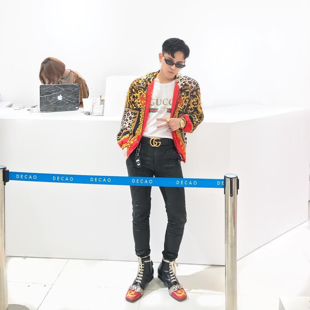 Decao lại đem đến set đồ toàn hàng hiệu, từ áo thun Gucci đến áo khoác cùng thương hiệu. Bên cạnh đó, cách nhấn nhá màu sắc từ quần áo đến giày của anh chàng cũng được nhiều người đánh giá cao.