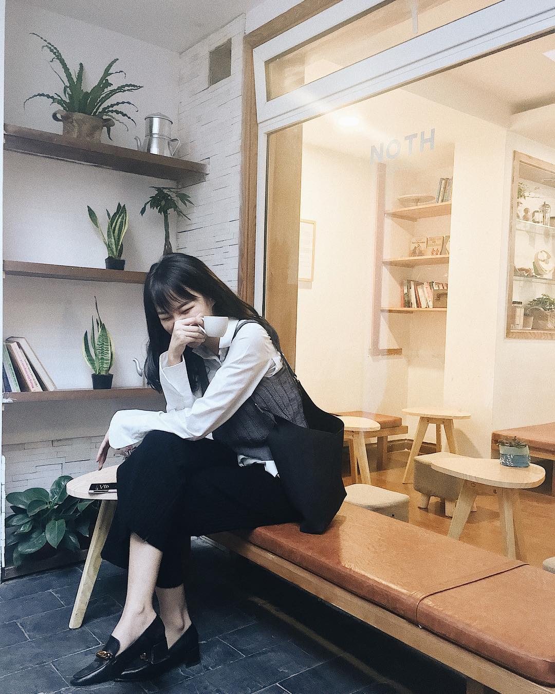 Cô nàng Phí Phương Anh dần được khán giả công nhận là một fashionista thực thụ với lối ăn diện bắt mắt, hợp xu hướng. Lựa chọn set đồ gồm áo sơ-mi trắng, layer với áo len dệt cùng quần culottes đen, quán quân The Face mùa đầu tiên cũng lựa chọn đôi loafer thanh lịch nhằm tạo nét sang trọng, trẻ trung.