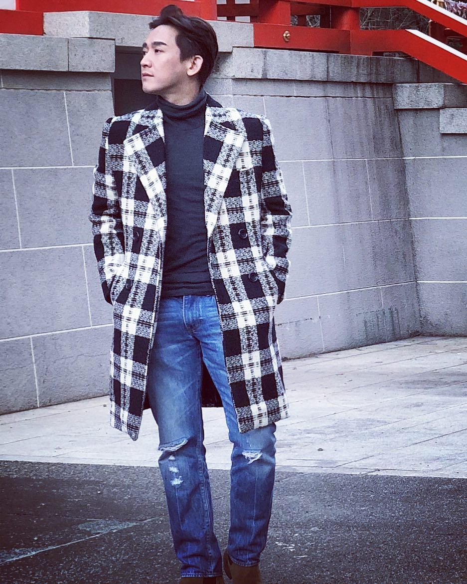 Hứa Vỹ Văn tiếp tục khẳng định danh xưng “soái ca làng điện ảnh” mà mọi người dành tặng cho anh là hoàn toàn hợp lí. Với set đồ gồm áo phông đen, quần jeans xanh cùng áo khoác ca-rô xu hướng, nam diễn viên thể hiện nét điển trai, cùng phong thái lịch lãm khi xuống phố.