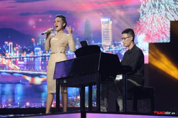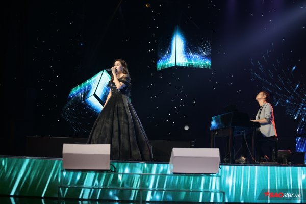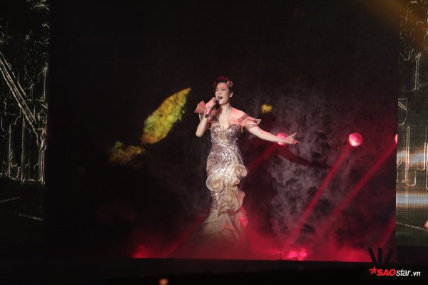 Minh Ngọc lựa chọn chiếc váy đen để hóa thân thành nữ diva kiêu hãnh cùng chất giọng “không phải dạng vừa”.