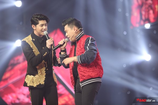 Xuất hiện cùng tiết mục đồng ca, “anh hai” Lam Trường diện áo khoác bomber đỏ chất liệu nhung, trong khi Noo Phước Thịnh bảnh bao cùng áo vest thêu đính cầu kỳ.