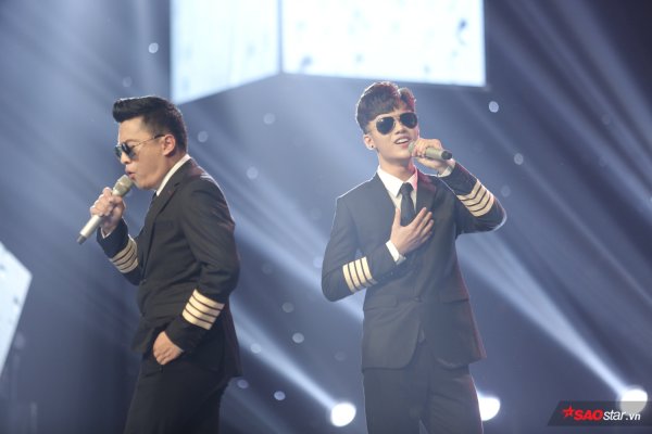 Dương Quốc Anh cùng HLV Lam Trường khiến các khán giả à ồ thích thú khi hóa thân thành hai anh chàng điển trai trong ca khúc đình đám “Mưa phi trường”.
