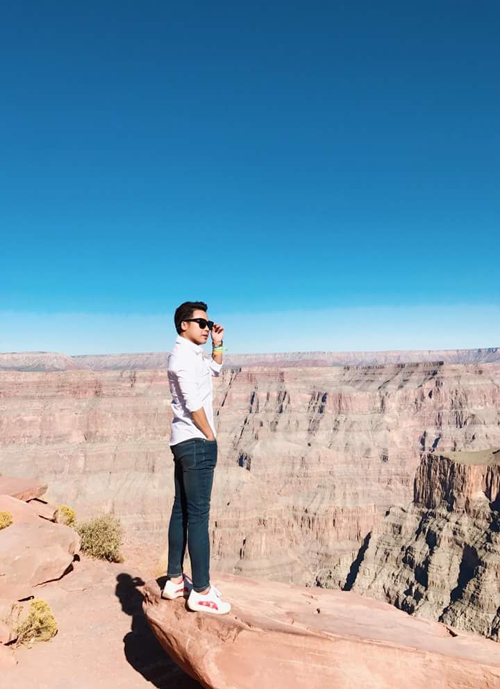 Đây cũng là kiểu kính được anh chàng sử dụng trong chuyến đi Mỹ vừa rồi, có thể nhận định, ăn mặc kiểu gì thì bạn trai Hòa Minzy vẫn cứ mãi trung thành với món phụ kiện này thôi.