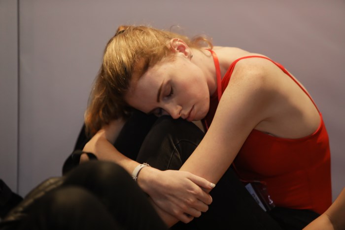 Người mẫu tranh thủ chợp mắt để lấy sức chống chọi cho tới cuối ngày.