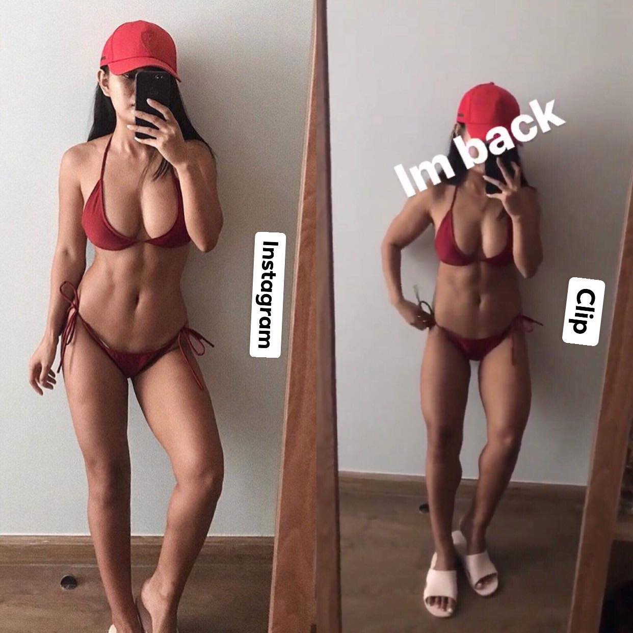 Vậy nhưng, mới gần đây, trên mạng xã hội xuất hiện những tấm hình của cô với thân hình núng nính mỡ thừa, khác xa với những gì trên trang cá nhân của cô đăng tải. Ngay lập tức người ta nghĩ rằng tất cả chỉ là do cô chỉnh ảnh mới có được thân hình đẹp đến như vậy.