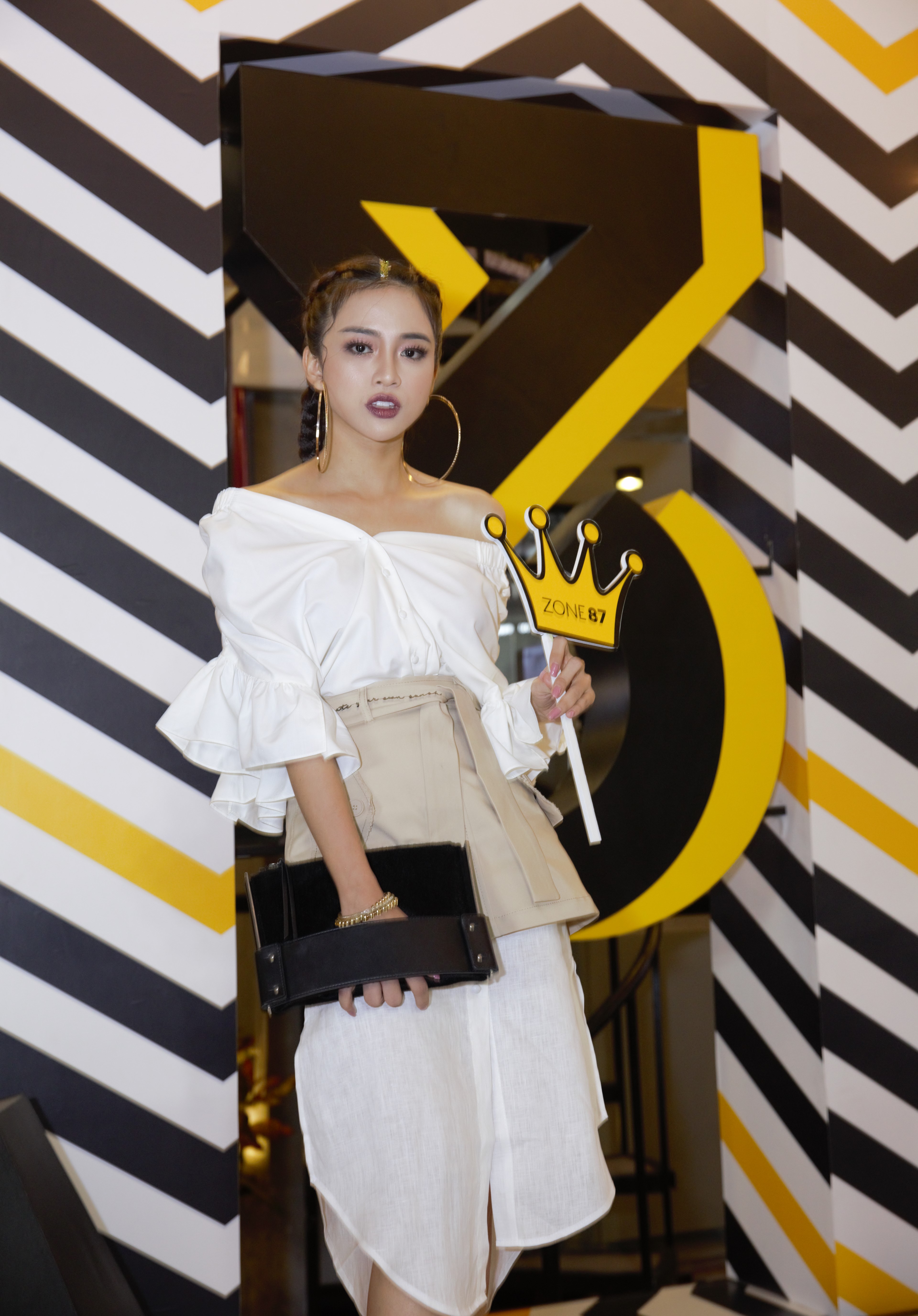 Thiên Nga - chân dài gây không ít chú ý tại The Face mùa 2 cũng có mặt với sơ mi trắng lệch vai cùng tóc tết điệu đà.