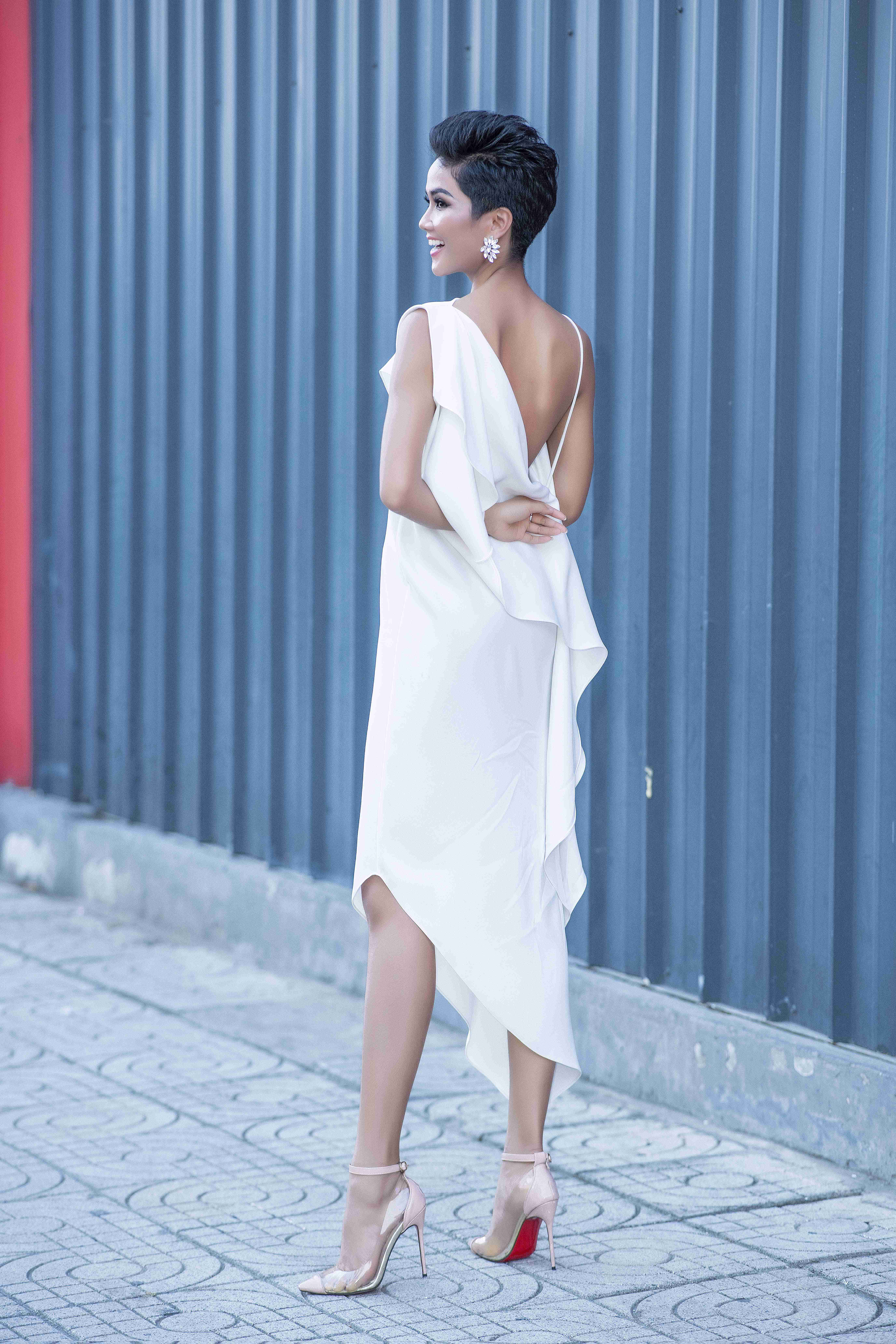 Thế nhưng nàng hoa hậu cá tính lại tự tin phá vỡ quy luật thời trang này. Hen khoe làn da bóng giòn trong chiếc váy tuyệt đẹp. Sắc trắng càng tôn lên sắc vóc săn chắc và vẻ đẹp rạng ngời của hoa hậu.