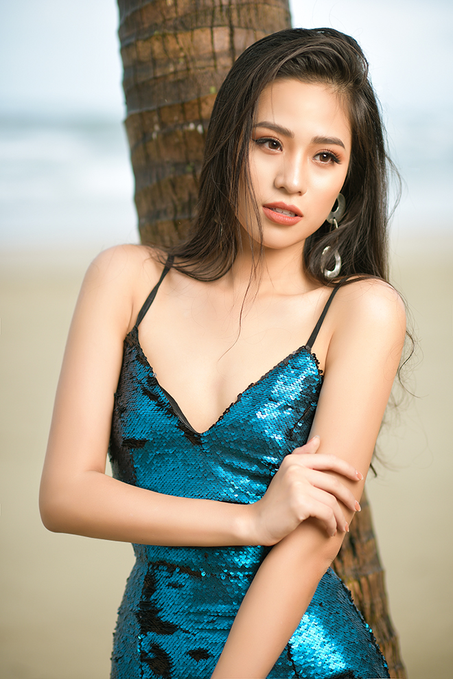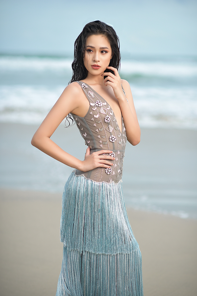 Trong bộ ảnh mới thực hiện tại Đà Nẵng, Bảo Châu khoe nhan sắc rực rỡ của tuổi 18 trước khung cảnh biển trong lành. Cô liên tục thay đổi trang phục từ bikini, dạo phố đến đầm dạ hội. So với thời điểm tham gia HHVV, người đẹp đã tiến bộ hơn rất nhiều về khả năng diễn xuất trước ống kính máy ảnh.