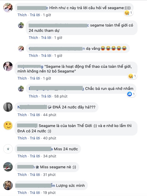 Chưa dừng lại ở đó, khi giám khảo Samuel Hoàng hỏi SEA Games có bao nhiêu nước tham gia thì Kim Thùy lại nói rằng có 24 nước. Ngoài ra, cô nàng không nhớ trên thế giới có tổng cộng bao nhiêu quốc gia.
