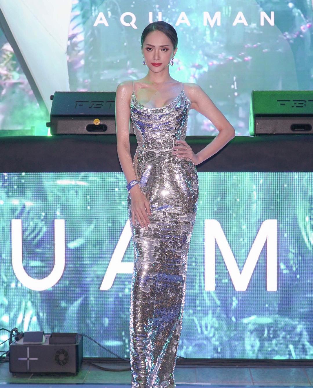 Một làn da trắng sáng là yếu tố ghi điểm của Hương Giang trong bộ cánh đuôi cá ánh bạc sequin này. Tuy nhiên vóc dáng mảnh mai trời ban mới là điều kiện giúp Hoa hậu chuyển giới tỏa sáng cả thảm đỏ như thế này đây.