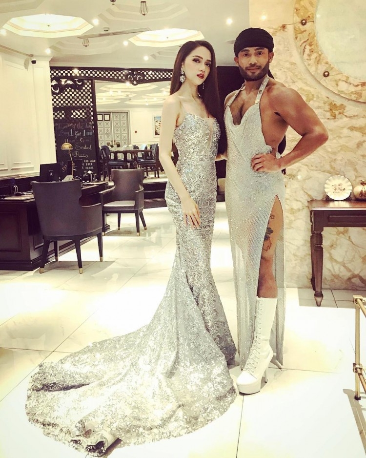 Chiếc váy ánh bạc kim này trông có vẻ rất kén dáng, nhưng đã vào tay Hương Giang rồi thì chỉ biết thốt lên đẹp cạn lời.