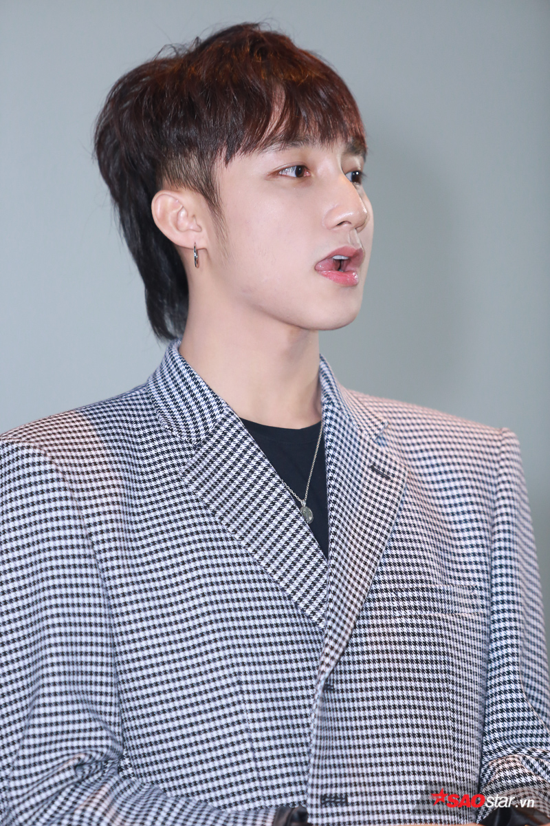 Diện suit kẻ sọc kết hợp T-shirt đen cùng phụ kiện quen thuộc, hơn hết là vẻ ngoài điển trai của giọng ca tài năng luôn là chủ đề hot.