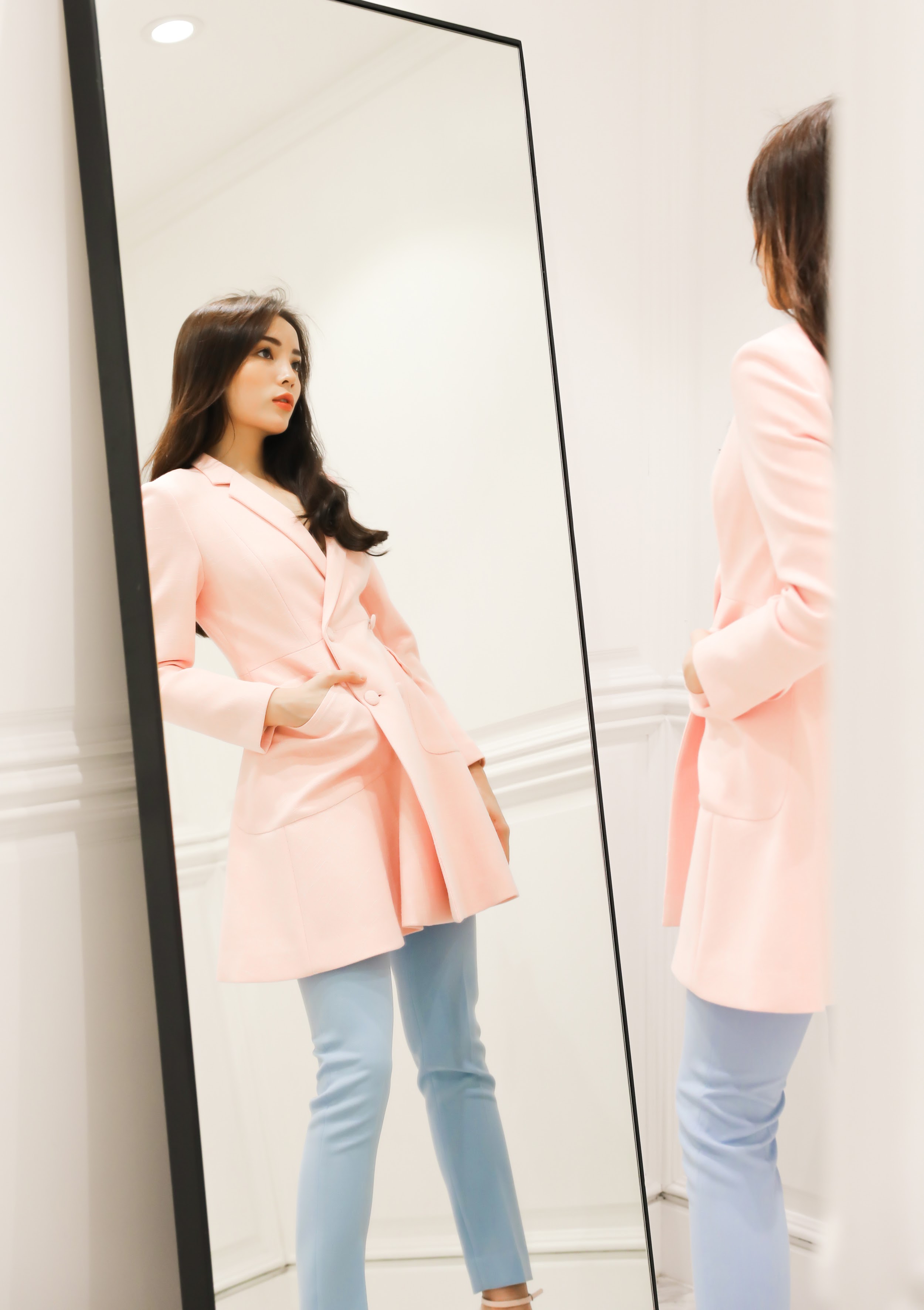 Mẫu thiết kế mang đậm hơi thở của hình ảnh những cô gái giữa lòng Paris, nơi Đỗ Mạnh Cường từng theo học ngành thiết kế và làm việc cho những nhãn hàng danh tiếng. Sự tối giản được nhà thiết kế họ Đỗ phát huy tích cực trong các mẫu thiết kế của mình.
