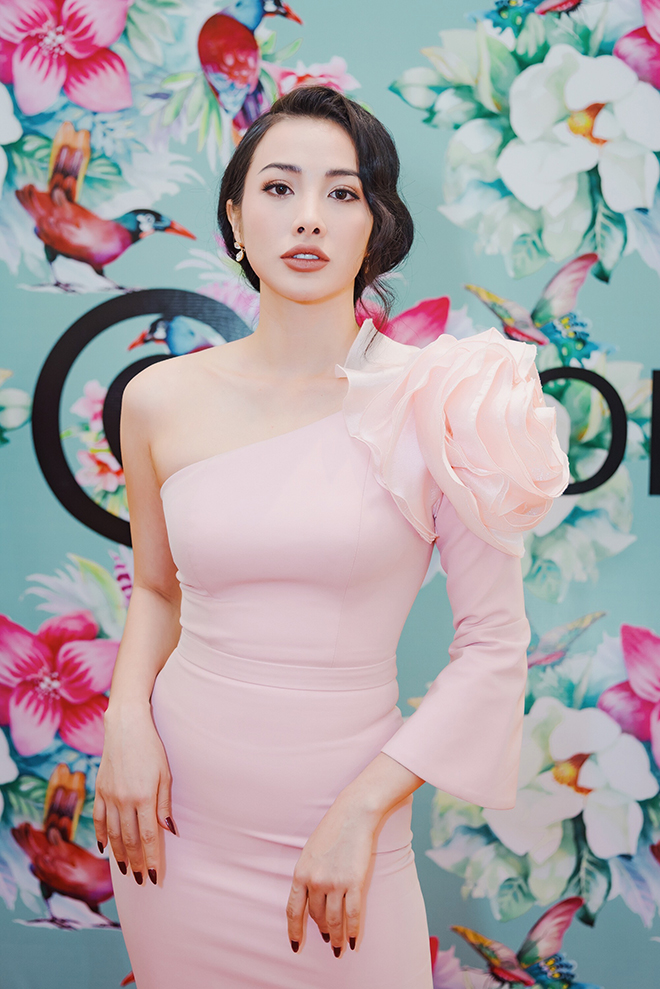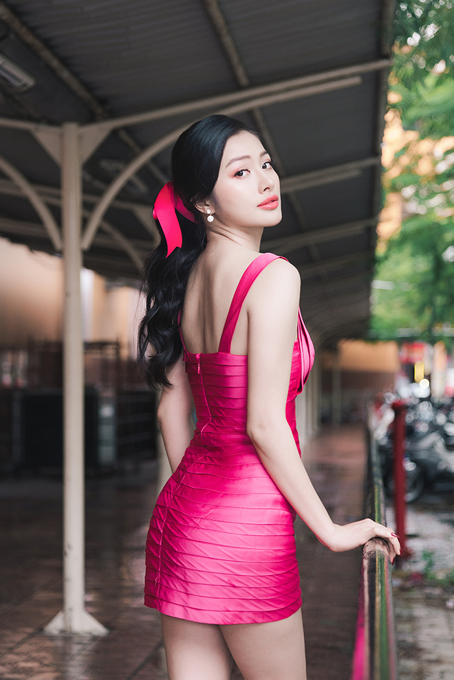 Không cần phải phô diễn hình thể quá mức, Yaya vẫn gợi cảm, quyến rũ qua chiếc đầm cocktail sắc hồng ngọt ngào
