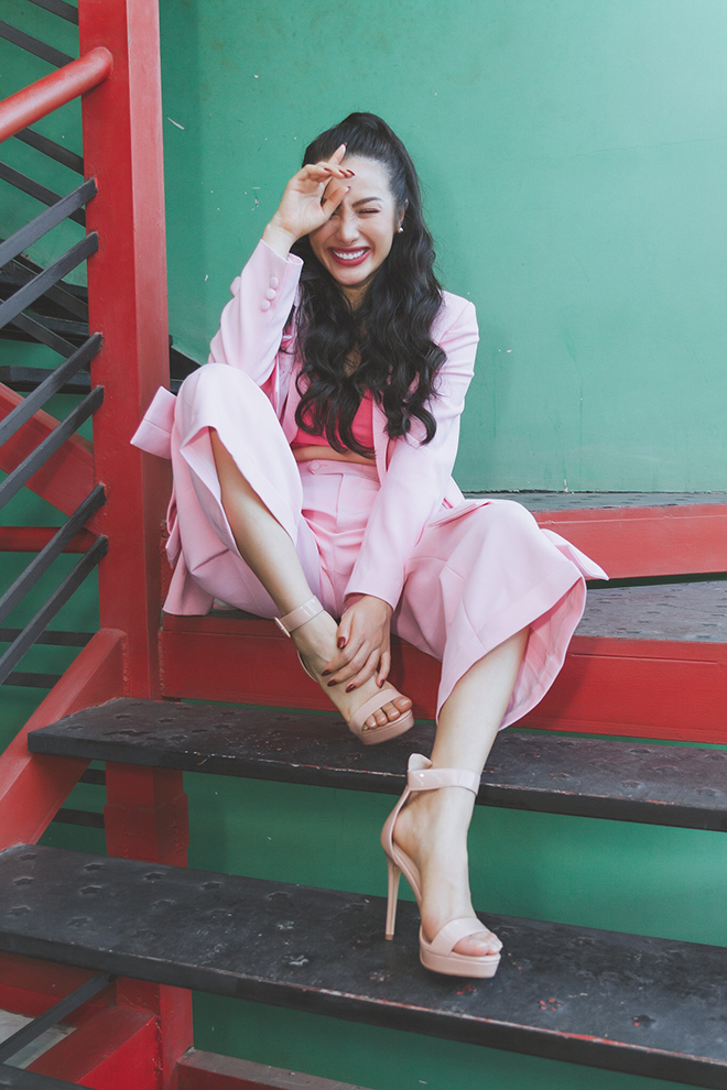 Vest hồng flamingo chưa bao hết hot khi kết hợp cùng chiếc áo cup ngực hồng cánh sen, Yaya Trương Nhi gợi ý phong cách thời trang cho những cô nàng cá tính, năng động