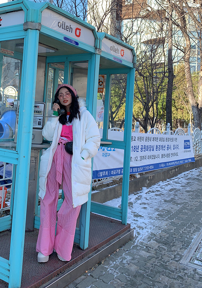 Mix chiếc mũ len sắc hồng kẹo ngọt kết hợp cùng chiếc quần suông ống rộng, Yaya khiến người khác phải ngả mũ thán phục trước street style đời thường của mình