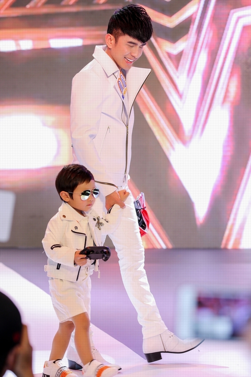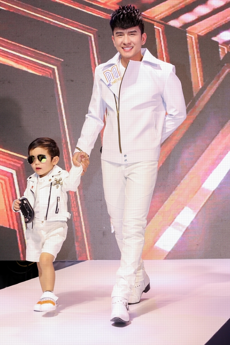 Xuất hiện ở vị trí vedette, anh nhận được tràng vỗ tay dài từ phía khán giả khi dắt con trai ra chào kết.