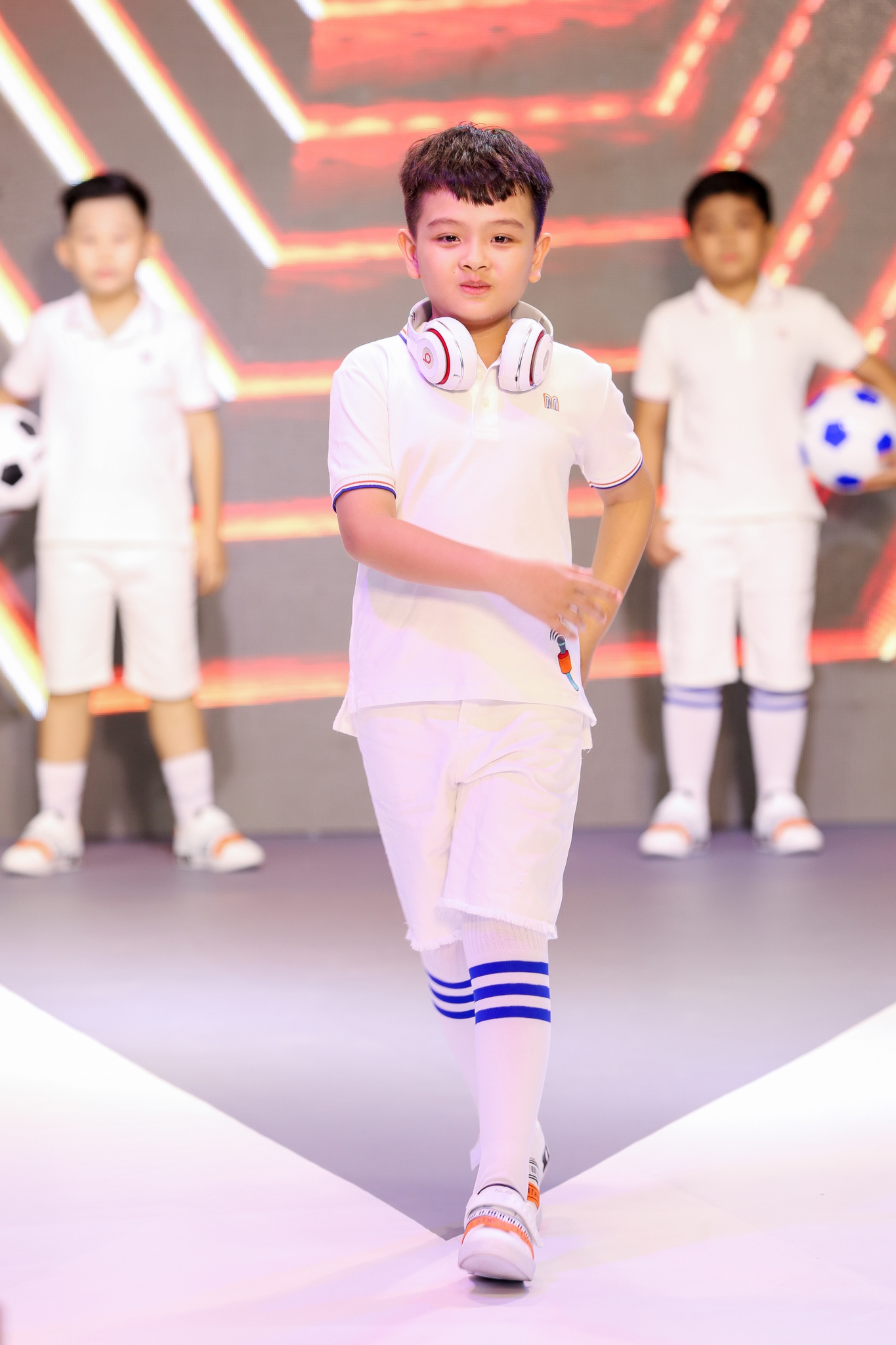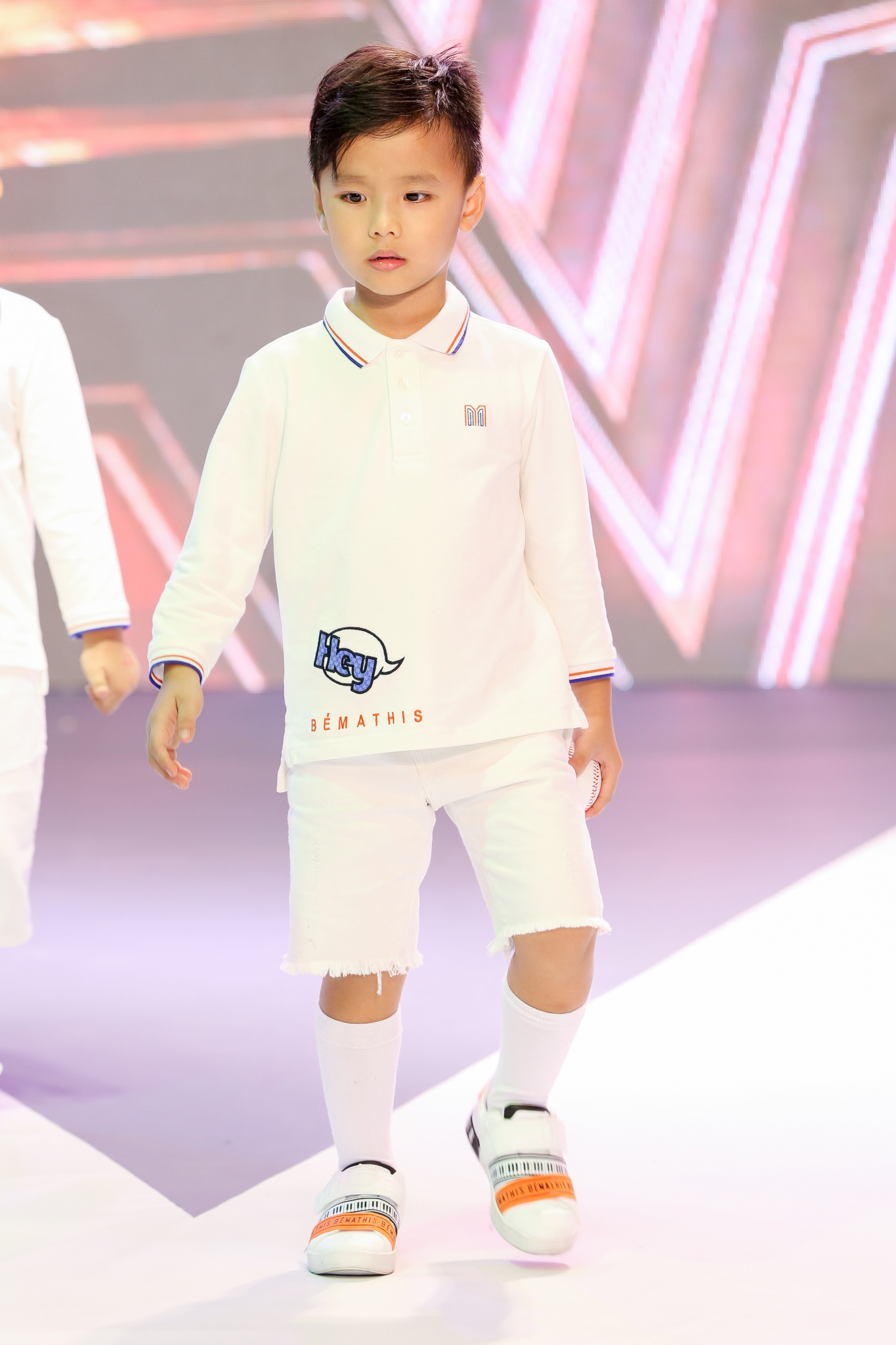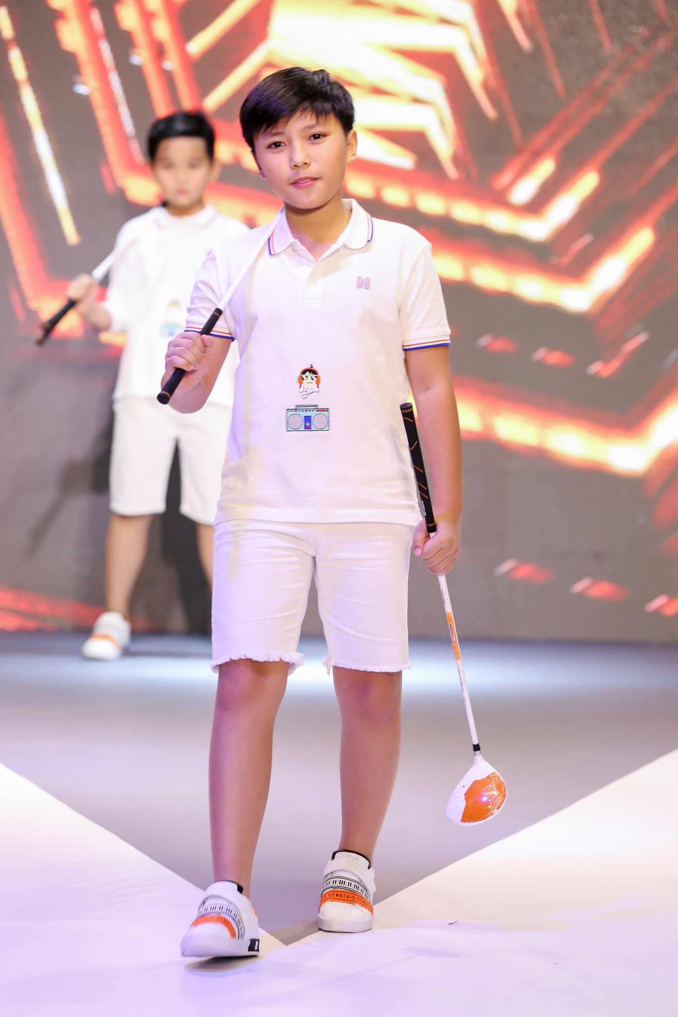 Những thiết kế được trình diễn chủ yếu đều theo phong cách white on white cá tính, nổi bật nhưng vẫn toát lên vẻ trẻ trung cho các bé trai.