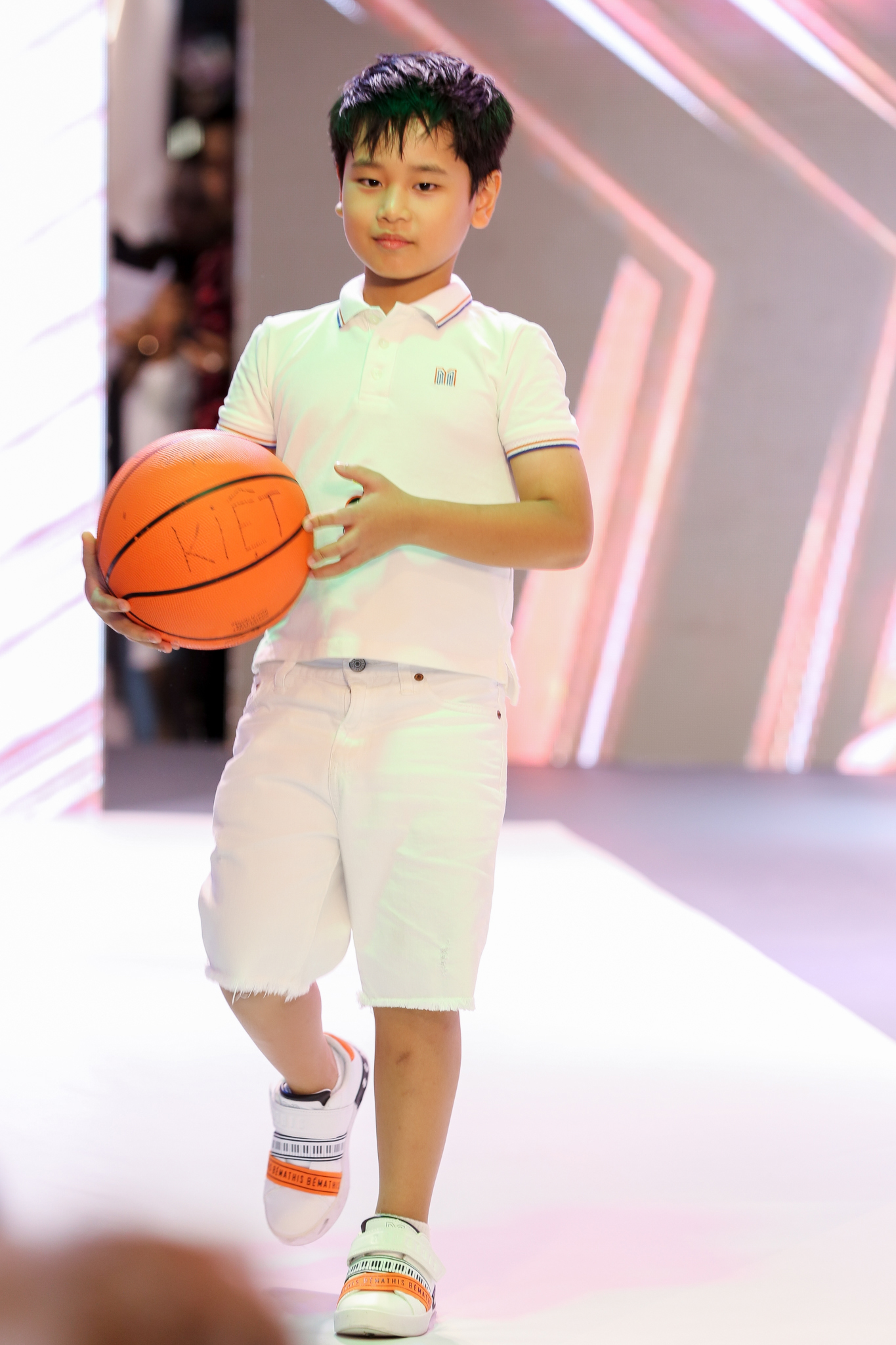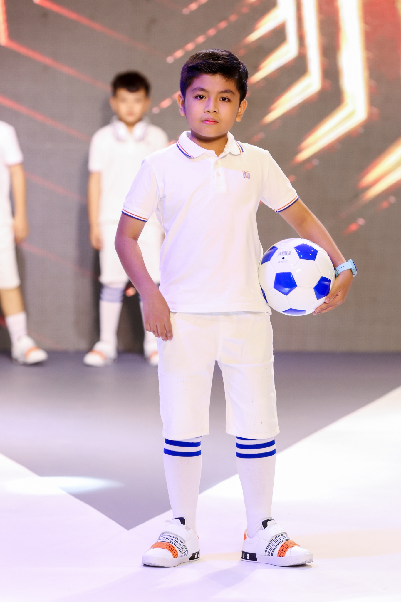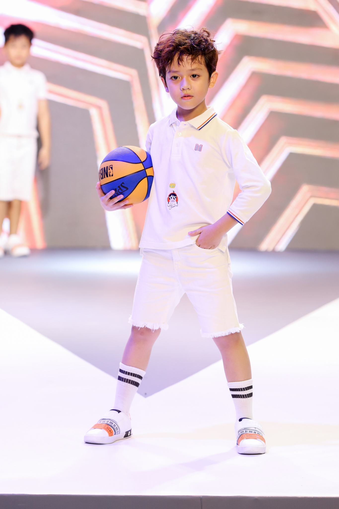 Những thiết kế được trình diễn chủ yếu đều theo phong cách white on white cá tính, nổi bật nhưng vẫn toát lên vẻ trẻ trung cho các bé trai.