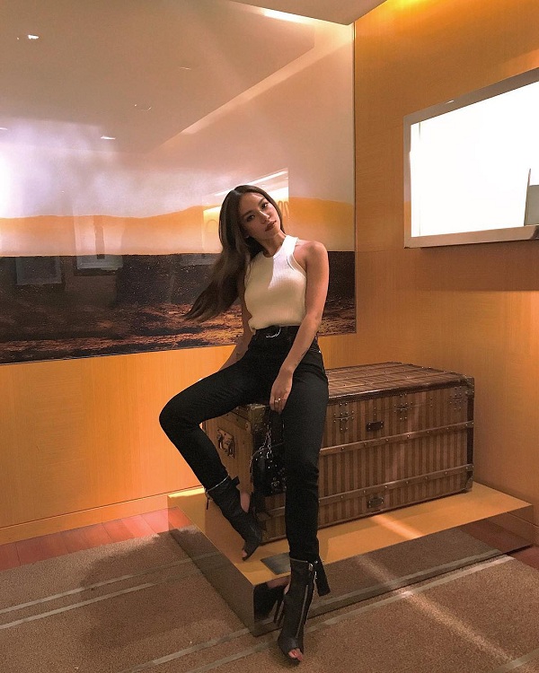 Những trang phục áo body croptop ôm sát hay quần skinny đều là những items ưa thích của cô