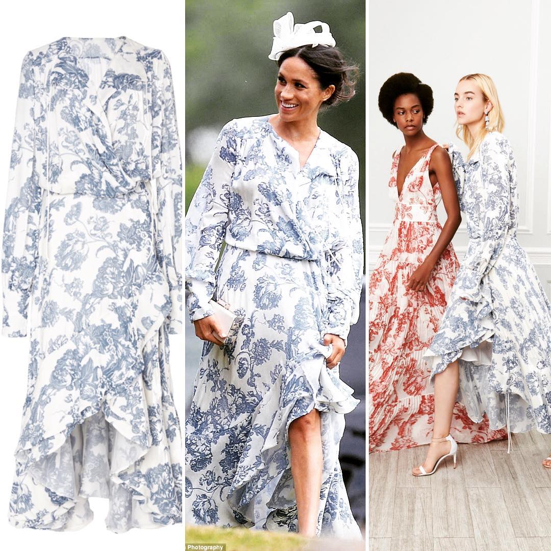 Đây là một thiết kế đến từ nhà mốt Oscardela Renta với họa tiết hoa nền nã, phần vạt xếp lệch dáng đuôi cá hiện đại phù hợp với không khí mùa hè. Chiếc đầm này cũng có mức giá không hề rẻ là 5.490$ tương đương 120 triệu đồng. Tuy nhiên khi diện chiếc đầm đắt đỏ này , công nương xứ Sussex lại không được đánh giá cao, đa số các fan đều tỏ ra không hài lòng.