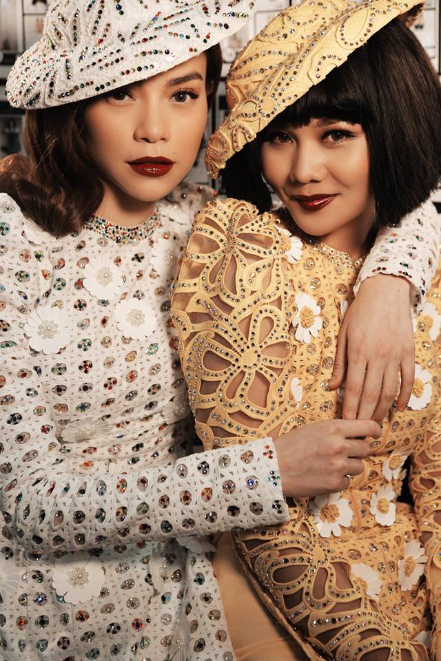 Quả không hổ danh hai “chị đại”, Hồ Ngọc Hà và Thanh Hằng đã có màn “song kiếm hợp bích” tuyệt vời trong show của Nguyễn Công Trí. Trang điểm tương đồng tuyệt đối với gam má cam đất và son màu đỏ thẫm, nhan sắc của cả hai quả là bất phân thắng bại.
