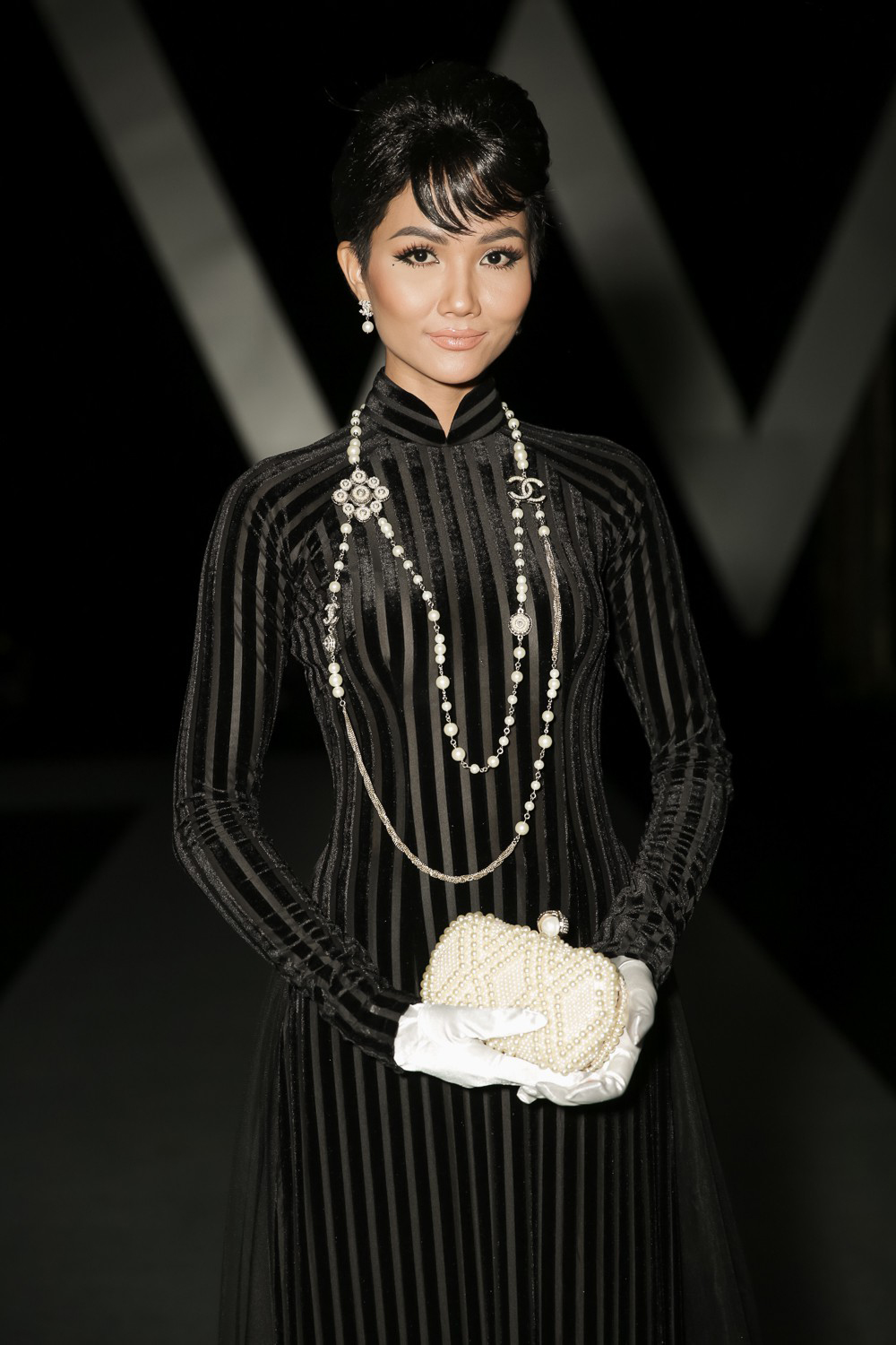Diện áo dài đen tuyền và trang sức đơn giản nhưng chính màn trang điểm tuyệt đẹp đã giúp H'Hen Niê ghi điểm tuyệt đối với vẻ đẹp kiêu sa, lộng lẫy.