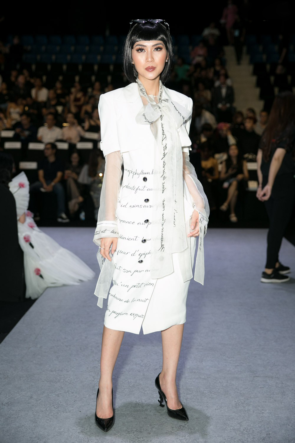 Nhã Phương cũng đã xuất hiện tại Vietnam International Fashion Week. Cô diện áo dài trắng đơn giản bất ngờ và trang điểm trang nhã, gợi vẻ đẹp tinh khôi.