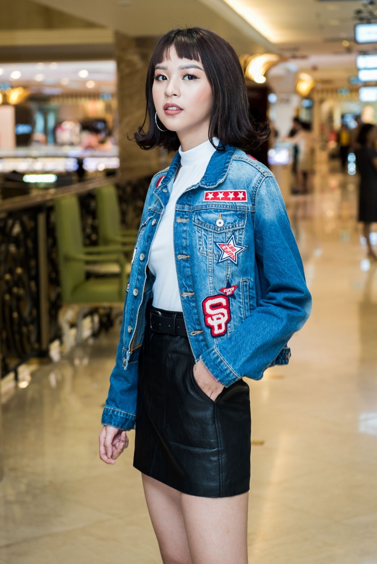 Đơn giản mà ấn tượng, đó là những gì Hoàng Oanh thể hiện trong diện mạo này. Mái tóc đơn giản, quần áo không cầu kì, chỉ một màu son bóng đỏ rực cũng đủ để cô nàng thu hút các ống kính.
