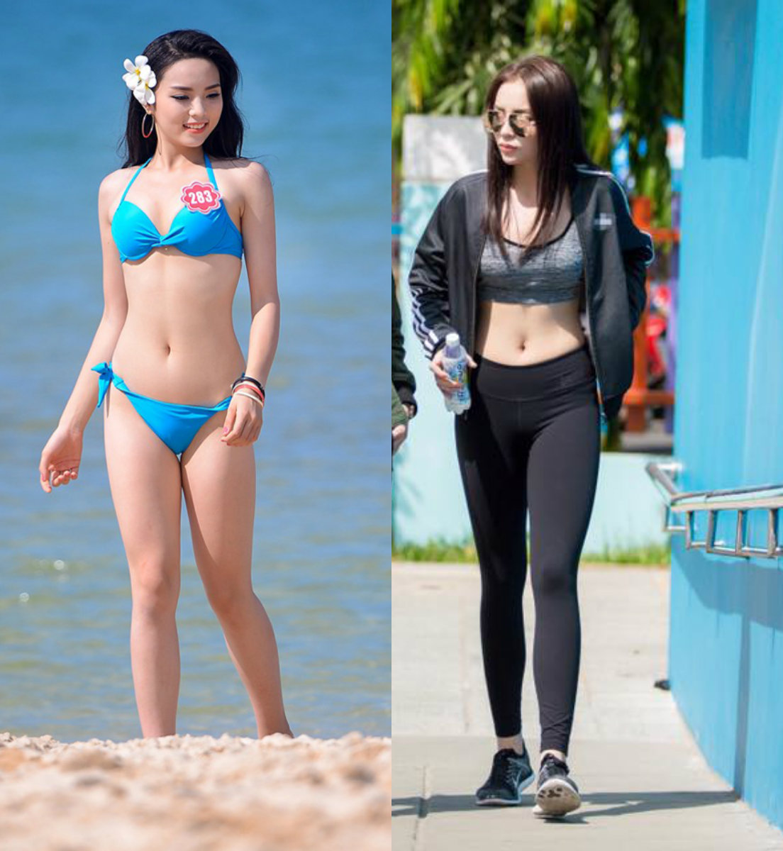 Bí quyết giúp Phạm Hương ghi điểm với bikini là đây. Cô thường xuyên đến phòng tập để giữ gìn vóc dáng. Thế nhưng khi so với Minh Tú, có lẽ Phạm Hương vẫn thua 1 điểm bởi Phạm Hương sở hữu vòng một hơi nhỏ. Trong khi đó, á quân siêu mẫu châu á trông đầy đặn, căn tràn.