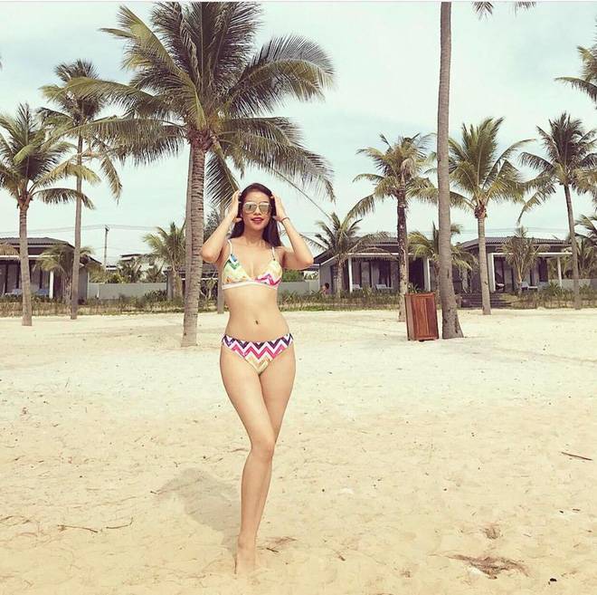 Dù với bikini một mảnh hay hai mảnh người đẹp gốc Hải Phòng luôn biết cách phô diễn đường cong hình chữ S nổi bật của mình.
