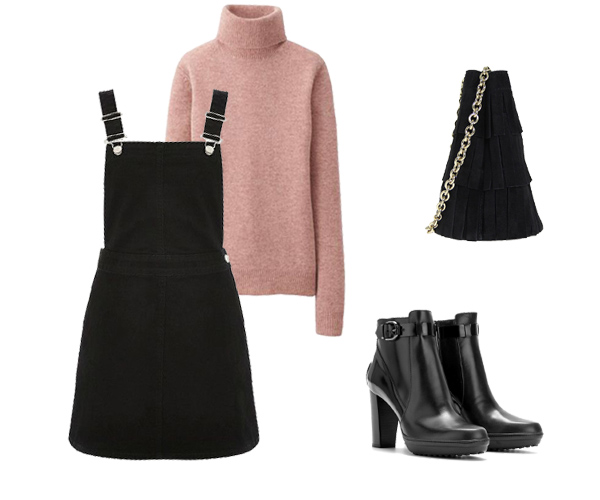 Đối với các cô nàng trẻ trung mà vẫn muốn thể hiện cá tính của mình có thể học hỏi ngay tips phối hợp trang phục giữa váy yếm cùng áo len tay dài và điểm nhấn đến từ mẫu ankle boots độc đáo.