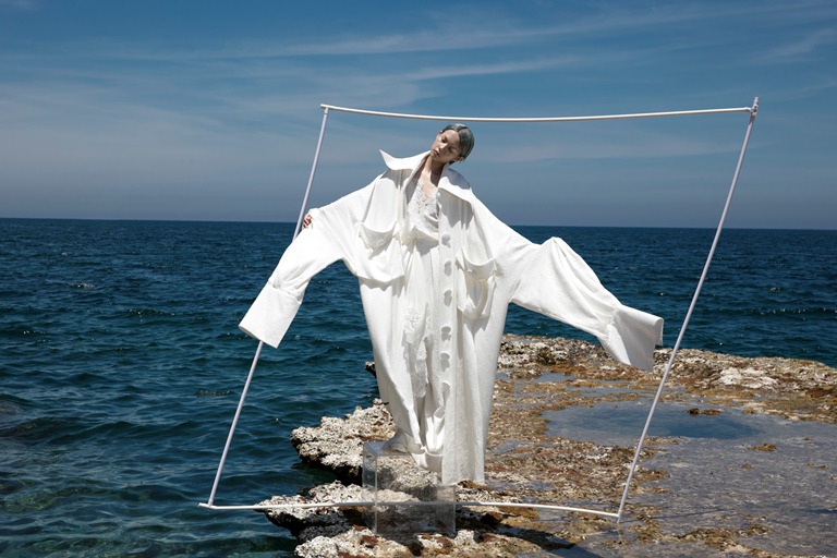 Thiết kế váy trắng oversize của nhà thiết kế Công Trí được Rihanna mặc để chụp hình quảng quá cho bộ sưu tập “So Stoned”.