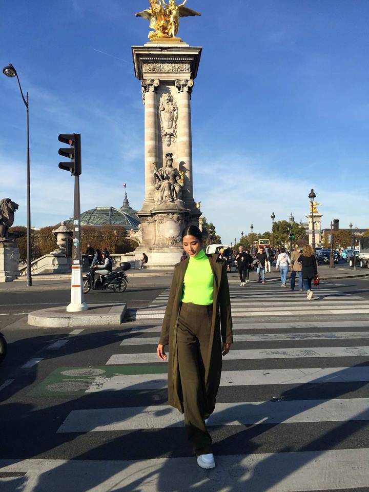 Khi Hoàng Thùy và Khánh Linh bất ngờ cùng post tấm ảnh streetstyle tại Paris trong chiếc áo len cổ lọ màu xanh neon, sự phối đồ của hai người đẹp được các tín đồ thời trang đưa lên bàn cân xem ai mặc đẹp hơn ai.