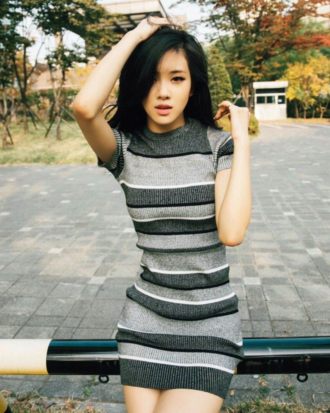 Cô nàng Rosé của Black Pink còn được biết tới với vòng eo thần thánh là 19 inch, tương đương với 48 cm, thân hình đẹp thế kia nên không hề khó cho cô nàng diện bộ đầm này.