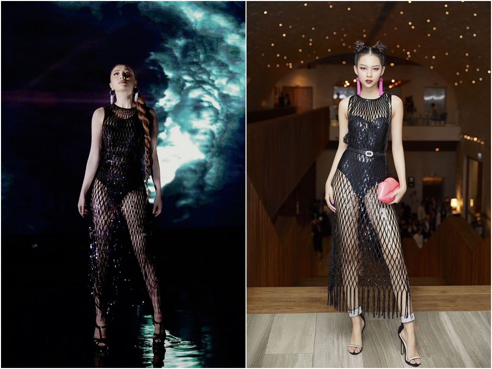 Dáng người thanh mảnh, cao ráo của cô cực kỳ phù hợp với thiết kế gợi cảm, phá cách này.