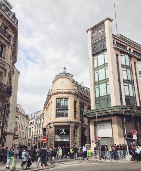 Trong khi đó, do múi giờ các nhau, các tín đồ thời trang ở Paris vẫn xếp hàng dài đợi store mở cửa.