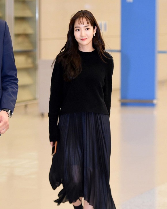 Cả hai cùng xuất hiện tại sân bay để trở về Hàn Quốc nếu Yoona thanh lịch trong trang phục áo thun trắng kết hợp blazer vàng và quần jeans khỏe khoắn thì nàng “Thư ký Kim” mặc áo len dài tay kết hợp chân váy xếp ly tông đen cùng kiểu tóc mái lưa thưa vô cùng nhí nhảnh, đáng yêu.