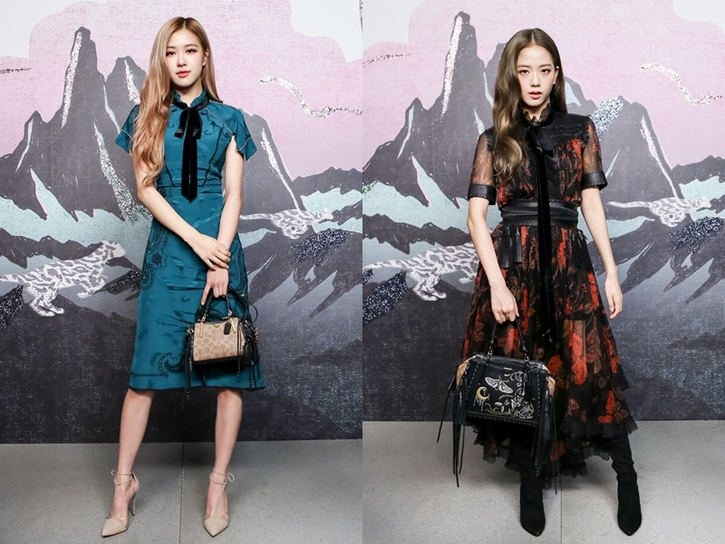 Cũng trong khuôn khổ tuần lễ thời trang New York, 2 thành viên của BLACKPINK là Rose (trái) và Jisoo nổi bật với 2 tông màu xanh - đỏ tại show diễn của Coach.