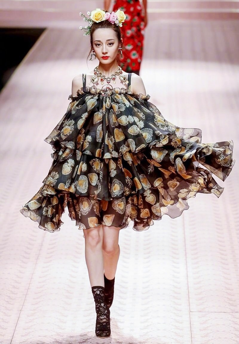 Địch Lệ Nhiệt Ba đến show diễn của Dolce & Gabbana với tư cách đại diện tại khu vực châu Á Thái Bình Dương. Sở hữu chiều cao và vóc dáng hoàn hảo, thế nhưng kiểu tóc cùng phong cách makeup khiến mỹ nữ Tân Cương kém sắc hơn hẳn so với mỹ nữ Thái Lan.