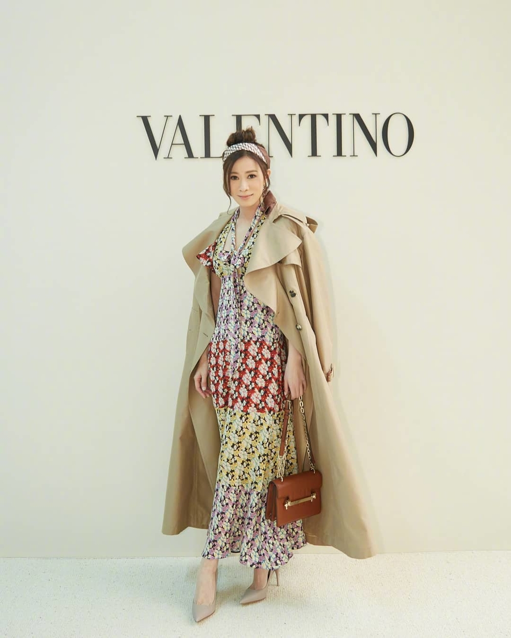 Trước đó, tại show Valentino - Xa Thi Mạn khoe vẻ đẹp nữ tính trong thiết kế áo trench coat phủ ngoài đầm maxi với điểm nhấn là chiếc khăn turban làm phụ kiện cho mái tóc