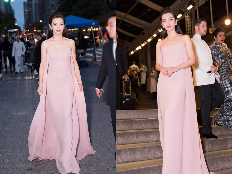 Nữ diễn viên “The Meg” Lý Băng Băng chọn chiếc váy hồng pastel đúng với tinh thần mùa Xuân Hè khi dự show của Ralph Lauren.